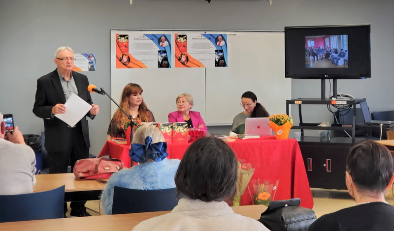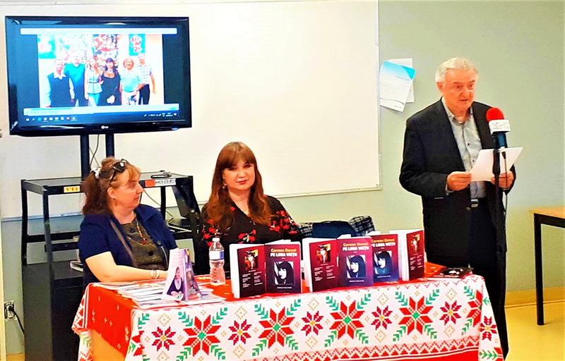 Adrian Erbiceanu făcând prezentarea celor două autoare (Carmen
