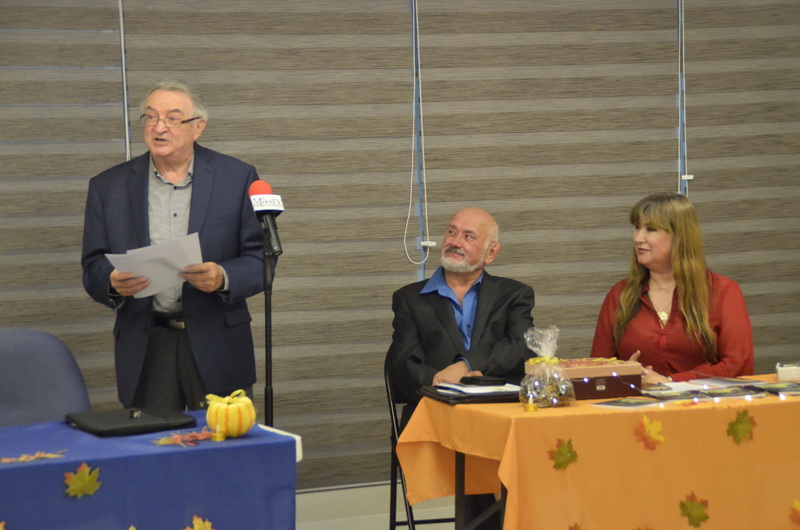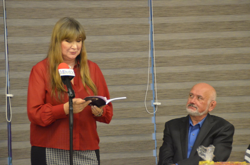Adrian Erbiceanu făcând prezentarea cărții dnei Ileana Anghel Meșter.