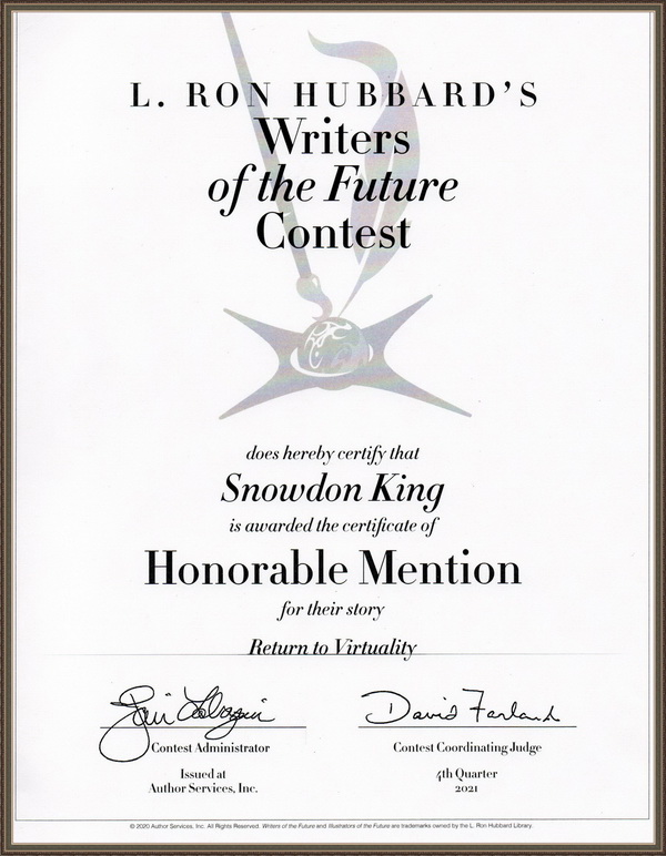 de Onoare la concursul L. Ron Hubbard Writers of the Future,